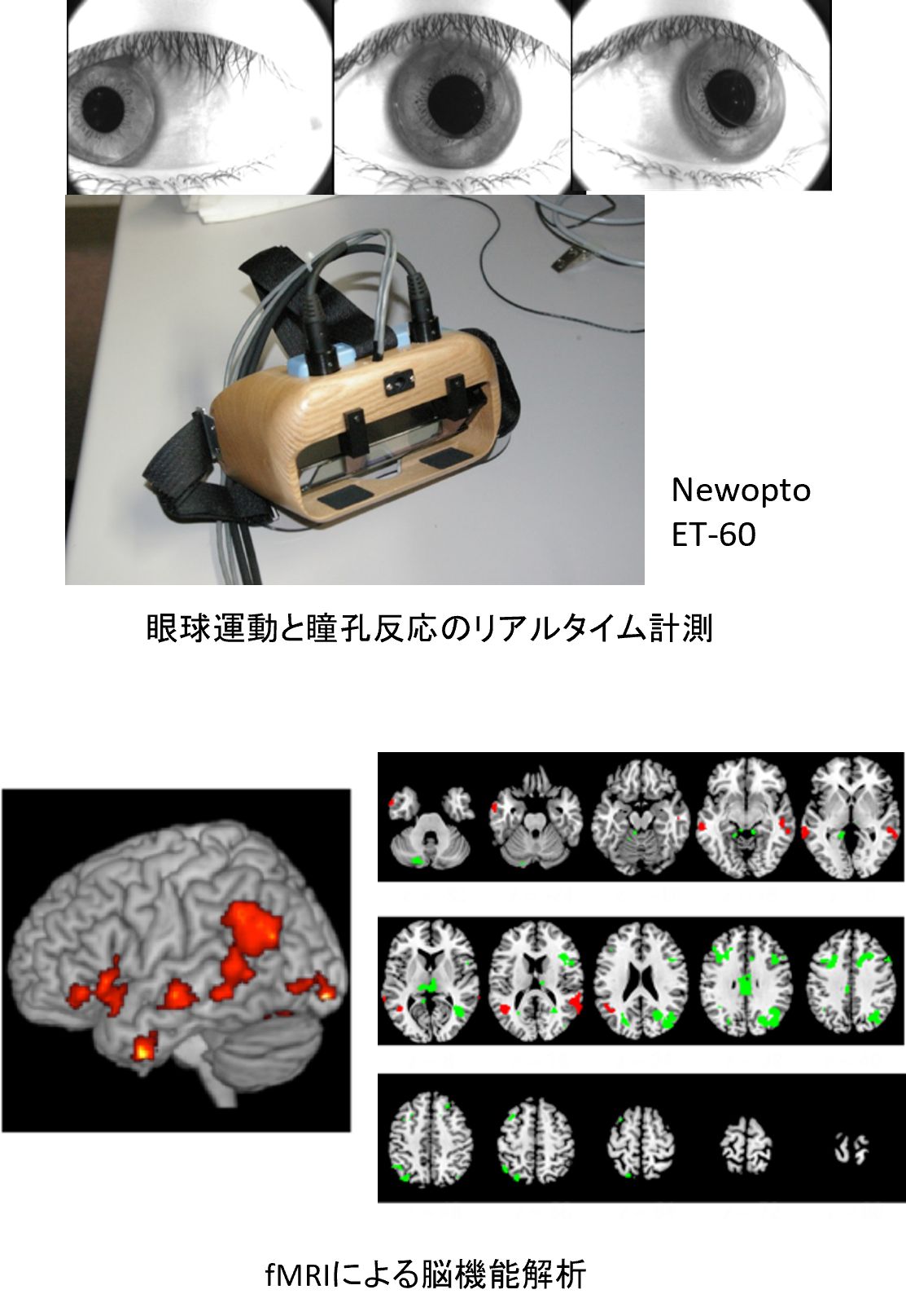 眼球はモノを見るために精密に運動しますが、その際の動きの向きや速度、パターンに多くの情報を持っています。また、瞳孔は光に反応してその径を変化させるだけではなく、情動(喜怒哀楽の様な感情)の変化にも敏感に反応し径を変えます。これらは自律神経系の作用によって変化します。眼球運動や瞳孔を分析することで、脳内で起こっている現象や自律神経の様子を推定することが期待できます。
