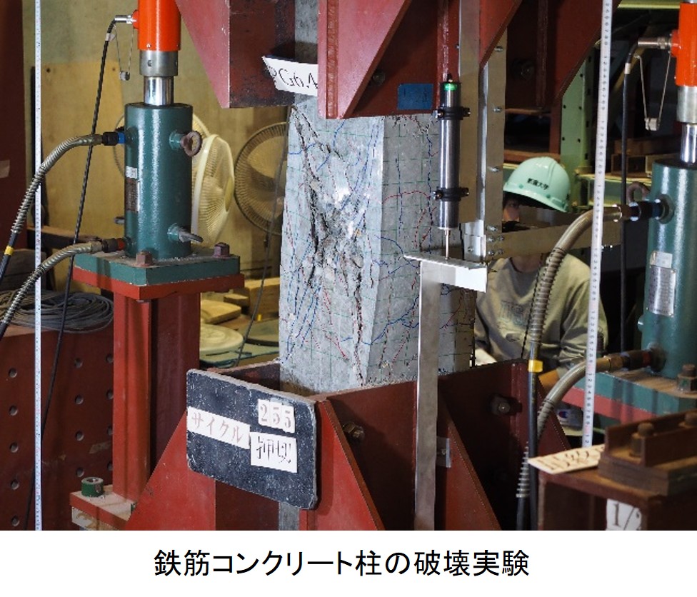 建築材料構造研究分野では、安全で災害に強い建築物を実現するための研究を行っています。例えば、過去に発生した大地震では、建築物のある層が完全に崩壊する層崩壊の被害が数多く生じました。それら層崩壊した建物の大部分は古い耐震設計基準により設計されており、現在でも古い建物は多数存在しているため、今後大地震が発生した際に同様の被害が生じる可能性が大きいといえます。層崩壊は人命に直接危害を及ぼす破壊形式であるため、将来の大地震に対してこのような建物の崩壊を耐震補強によって防止することが必要であり、そのためには、柱が被害を受けて縦方向に崩壊する際の性状や建物の崩壊過程を把握しておく事が非常に重要です。