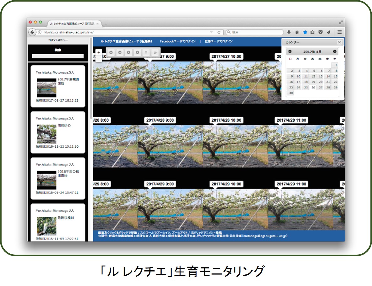 さらに、樹上での果実の生育を画像モニタリングするとともに、近赤外分光センサーで非破壊・経時計測することで、収穫適期の推定、収穫果の品質推定など、高品質な果実の栽培管理に向けた研究にも取り組んでいます。
