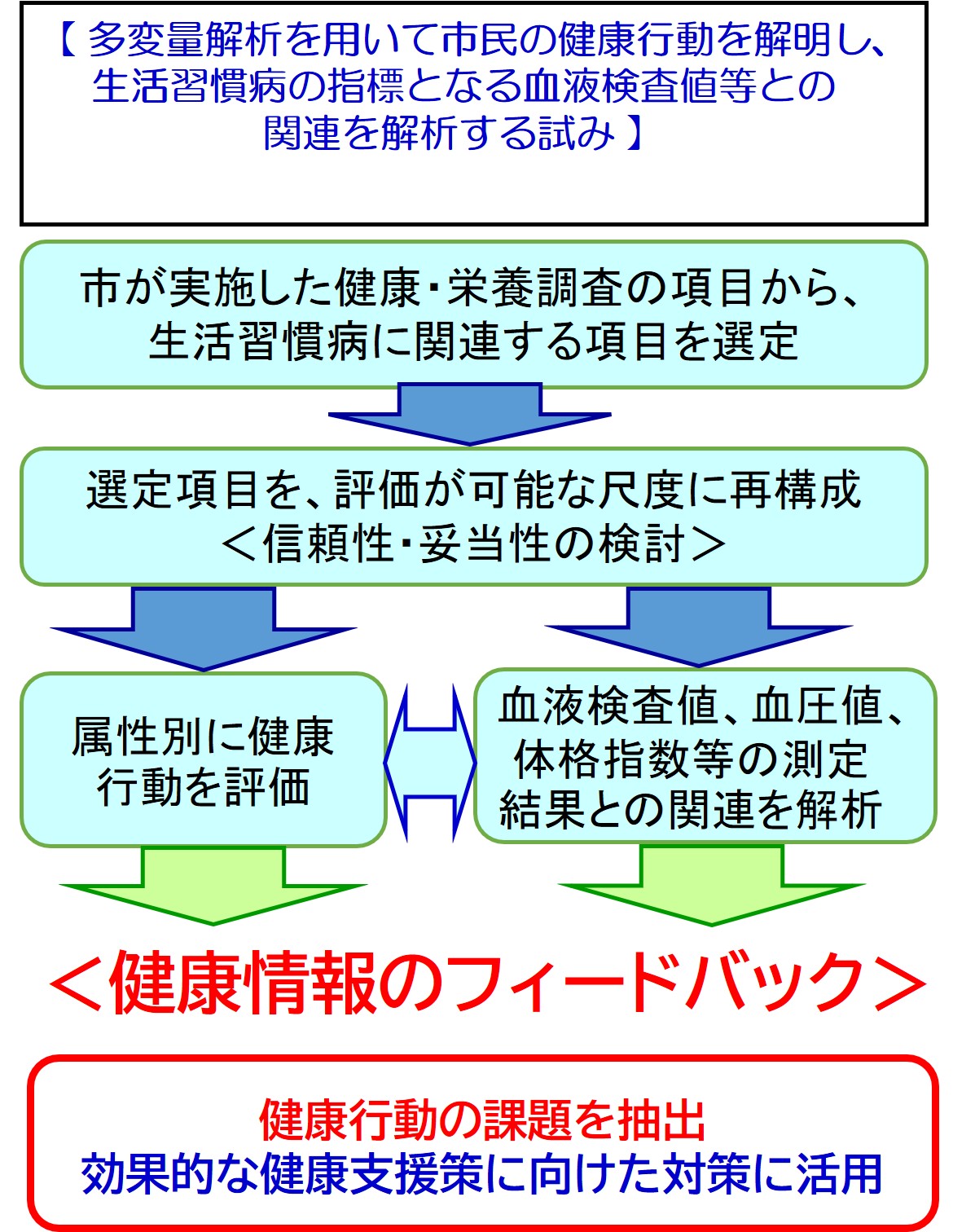 信頼性の高い統計解析結果に基づき、疾病に影響する健康行動を評価することは、科学的根拠に基づく効果的・効率的な健康支援策の検討を可能とします。